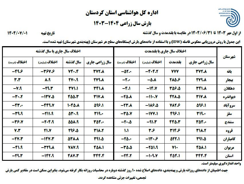 گزارشات عملکرد اداره هواشناسی کردستان