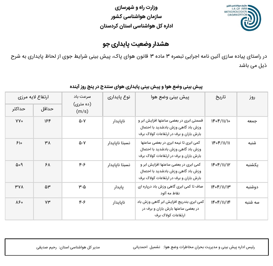 قراردادهای هواشناسی کردستان