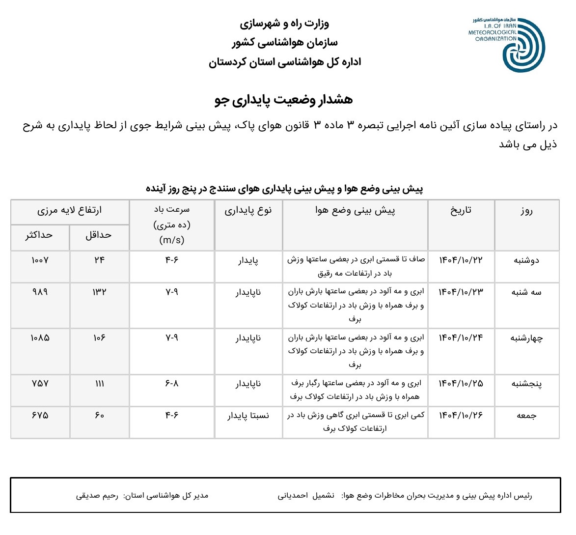 بولتن آلودگی استان کردستان؛ تاریخ صدور : دوشنبه 22 دی ماه 1404