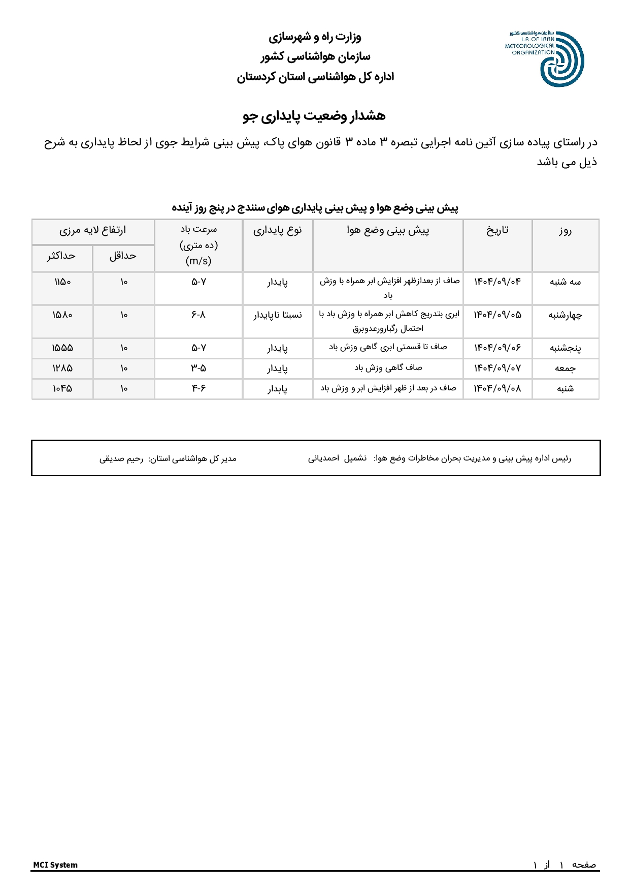 گزارشات عملکرد اداره هواشناسی کردستان