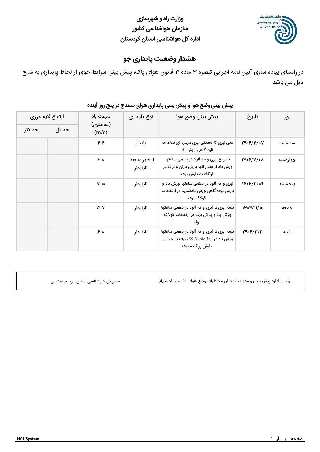 گزارشات عملکرد اداره هواشناسی کردستان