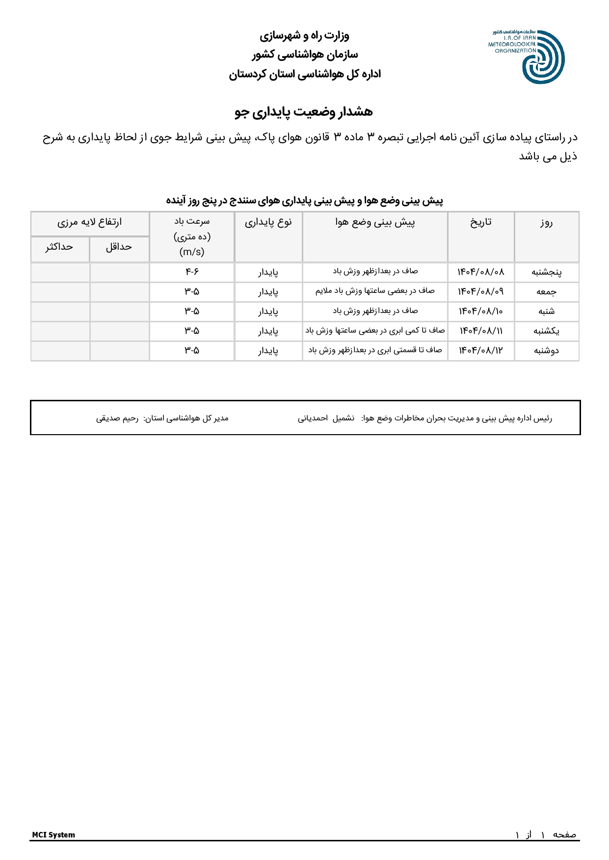 گزارشات عملکرد اداره هواشناسی کردستان
