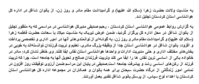 تجلیل از بانوان شاغل در هواشناسی کردستان به مناسبت گرامیداشت مقام مادر و روز زن