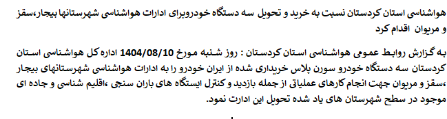 گزارشات عملکرد اداره هواشناسی کردستان
