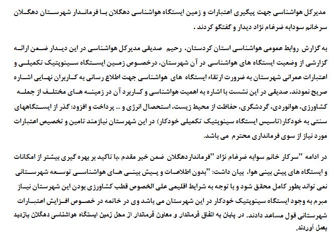 دیدار مدیر کل هواشناسی استان کردستان با فرماندارشهرستان دهگلان