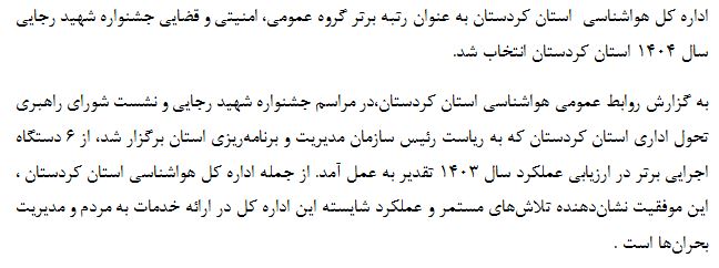 کسب رتبه برتر اداره کل هواشناسی استان کردستان در جشنواره شهید رجایی